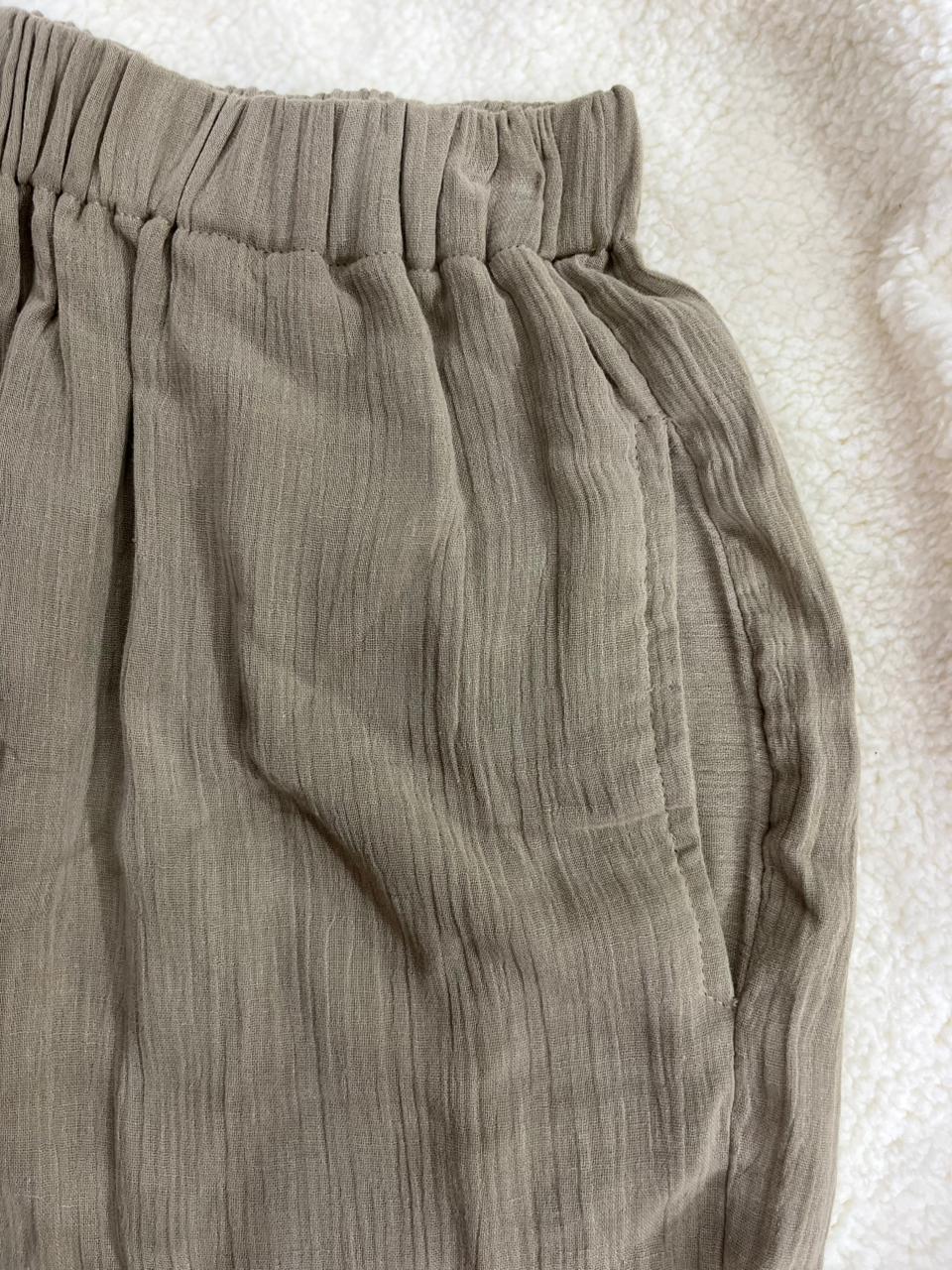 Designed with a comfortable elastic waistband, they provide an easy, relaxed fit that moves with you throughout the day. The earthy taupe shade adds a warm, minimal touch — perfect for pairing with basics, oversized shirts, or summer tops.