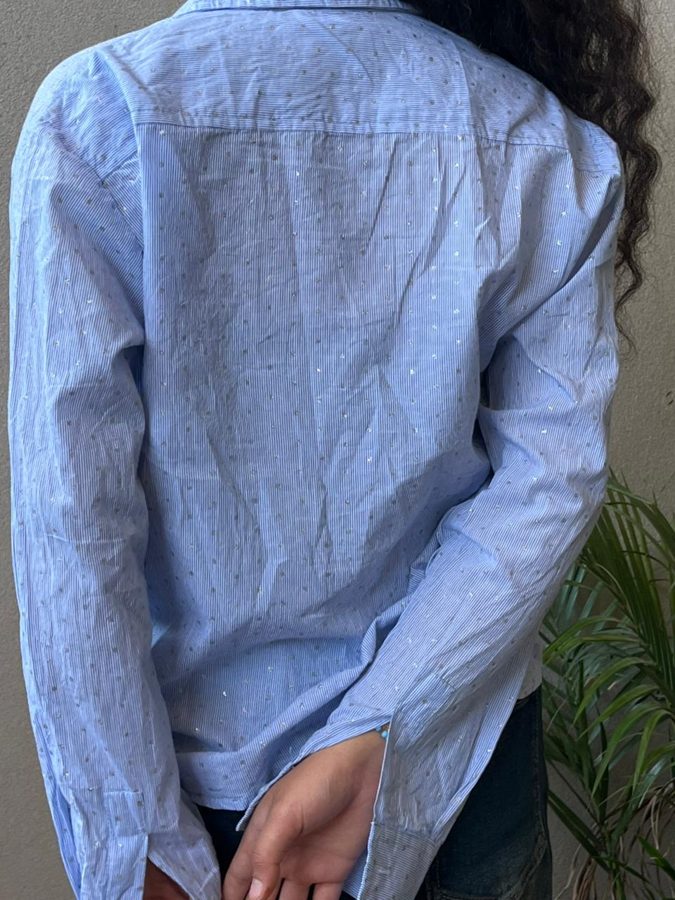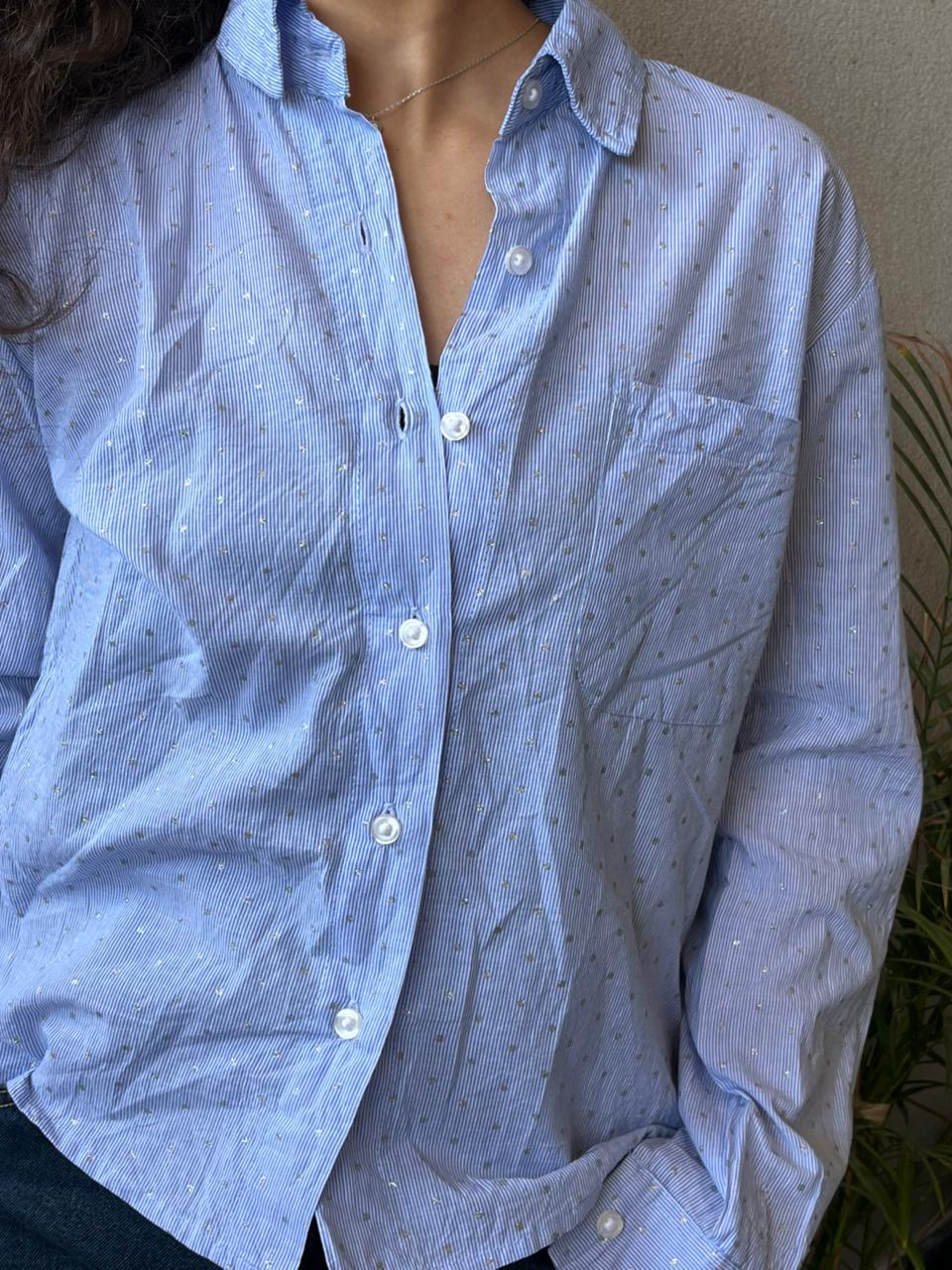 Designed with a classic collar and full button-down front, it offers a polished finish suitable for both workwear and casual settings. The soft blue tone enhances its versatility, making it easy to pair with trousers, denims, or skirts.